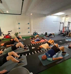 We hebben een totaal sportoppervlakte van 200m2, ruimte zat om in groep te komen trainen.